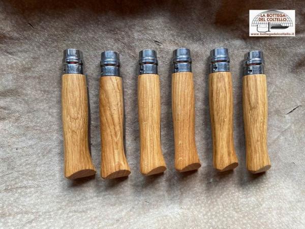 Sul manico dei coltelli sono rappresentati i seguenti animali: cervo, camoscio, trota, cane, cinghiale, lepre. Lama in acciaio inossidabile 12C27 Sandvik, con un contenuto di carbonio che garantisce un tagliente molto soddisfacente pur contrastando la corrosione. Impugnatura in legno di quercia verniciato per la protezione dall'umidità e dallo sporco. Ghiera di sicurezza Virobloc che si compone di due parti, una fissa ed una scorrevole, che consentono di bloccare la lama in posizione aperta (sicurezza d'uso) e i posizione chiusa (blocco di trasporto). Lunghezza lama: cm 8,5. Confezione: scatola di cartoncino.