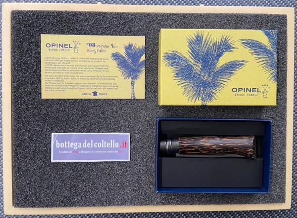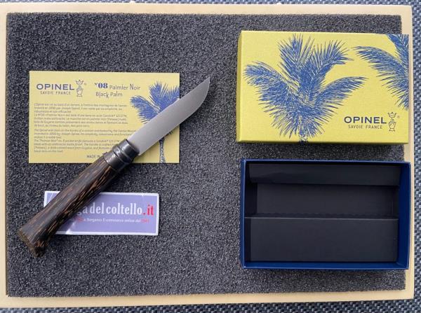 Opinel 8 Palma. Un lussuoso coltello in edizione limitata Il N°08 palma nera è un coltello unico grazie alla finitura antracite e al legno di Guyana.