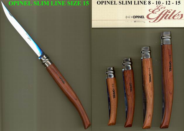 LAMA INOX CM 15. Vera metamorfosi dell'Opinel classico, l'Effilé (o Slim) è per molti una naturale evoluzione della forma ma anche della funzione. L'impugnatura più stretta favorisce la collocazione in tasca, la lama affusolata gli conferisce qualità di taglio ineguagliate, la linea elegante ne fa un perfetto coltello da tavola. Finitura a specchio, blocca-lama in apertura e chiusura.