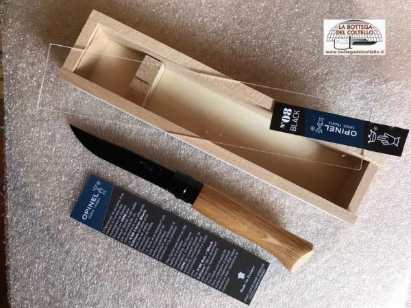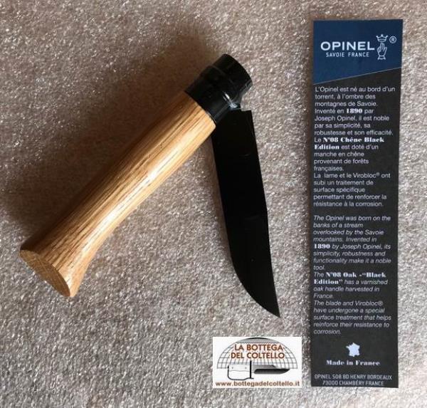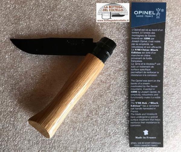 Opinel n 8, black edition, con manico in legno di quercia proveniente dalle foreste francesi e speciale trattamento superficiale nero.