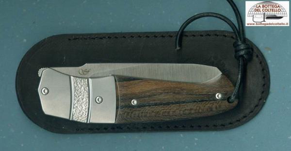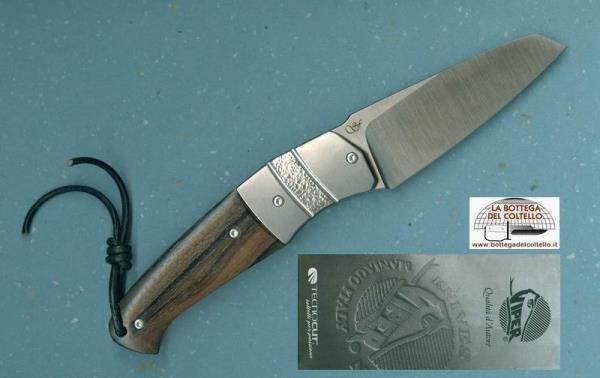 Prodotti Made in Italy, Novis 5974ZI è un coltello chiudibile qui proposto con le mostrine in titanio cesellato e l'impugnatura in pregiato legno ziricote: molto elegante, un vero “gentleman's knife”.
