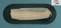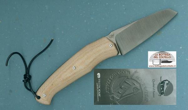 Tecnocut Maniago, Coltello Novis disegnato dal Maestro Fabrizio Silvestrelli. Qui proposto con l'impugnatura in Canvas Micarta® marrone, è estremamente elegante ma anche realmente pratico nell'uso quotidiano.