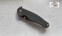 Lama: acciaio sinterizzato Böhler M390 temperato e trattamento criogenico; durezza HRC 59/61. Arrotatura piana, spessore 4 mm, stone washed. Meccanismo di blocco: liner lock in acciaio inossidabile temperato W.Nr.1.4116. Distanziale: in bronzo fosforoso monoblocco, lavorazione CNC. Manico: Canvas Micarta® nero. Clip: titanio sagomato. Viti: acciaio AISI 303; ghiera in bronzo. Meccanismo di rotazione: cuscinetti reggispinta. Peso 107gr, lunghezza totale 198mm, lunghezza lama 82mm. Confezione: scatola in cartone rinforzato con logo.