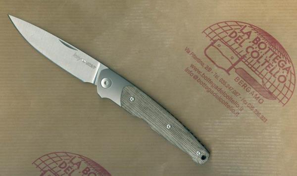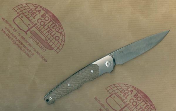 Caratteristiche tecniche pubblicate dal produttore: Lama: acciaio inossidabile Böhler M390 MICROCLEAN temperato sottovuoto; doppio rinvenimento e trattamento criogenico; durezza HRC 60/61; spessore 3 mm versione satinata. Cartella: doppie cartelle arrotondate in acciaio inossidabile W.Nr.1.4034 temperato. Guancette: Canvas Micarta® verde. Lavorazione CNC. Manico: titanio pieno GR5; lavorazione CNC. Distanziale: molla arrotondata con lavorazione a lima in acciaio temperato W.Nr.1.4034. Elementi di fissaggio: vite pivot e viti di fissaggio in acciaio inossidabile AISI 303/304. Meccanismo di rotazione: sistema Slipjoint con rondelle in bronzo.Confezione: bustina in pelle e scatola in cartone.