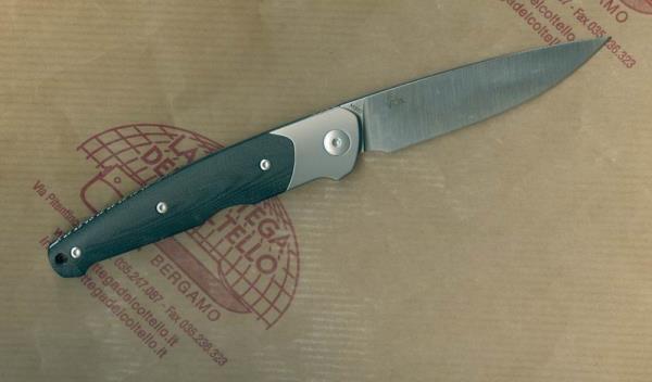 Caratteristiche tecniche pubblicate dal produttore: Lama: acciaio inossidabile Böhler M390 MICROCLEAN temperato sottovuoto; doppio rinvenimento e trattamento criogenico; durezza HRC 60/61; spessore 3 mm versione satinata. Cartella: doppie cartelle arrotondate in acciaio inossidabile W.Nr.1.4034 temperato. Guancette: G-10 nero. Lavorazione CNC. Manico: titanio pieno GR5; lavorazione CNC. Distanziale: molla arrotondata con lavorazione a lima in acciaio temperato W.Nr.1.4034. Elementi di fissaggio: vite pivot e viti di fissaggio in acciaio inossidabile AISI 303/304. Meccanismo di rotazione: sistema Slipjoint con rondelle in bronzo.Confezione: bustina in pelle e scatola in cartone.