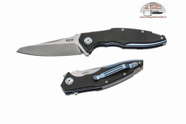 Questo è MK VP01-GB BK Raut G-10 nero, flipper - Caratteristiche pubblicate dal produttore: lunghezza lama 85 mm - Spessore lama 4 mm - Lunghezza totale 204 mm - Peso: 135 gr - Manico: frame in titanio Gr.5Ti6AI4V anodizzato blu, guancette in G-10 nero - Acciaio lama: Bohler M390 Microclean, HRC 58-60 - Accessori: astuccio in materiale sintetico con chiusura lampo e passacintura. Confezione: scatola di cartone.