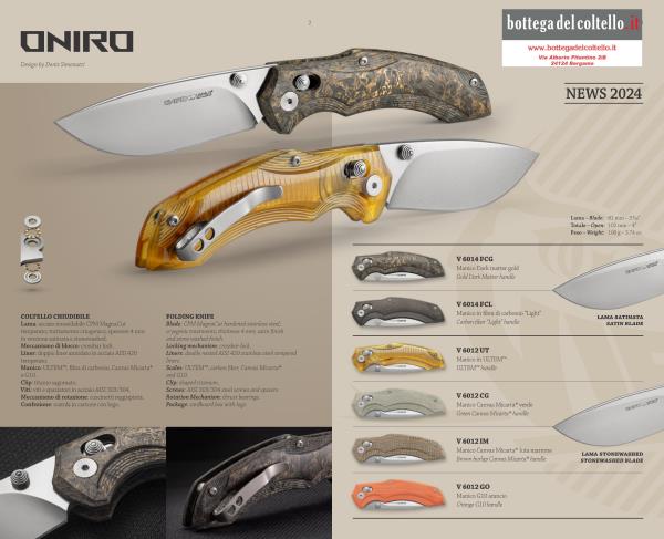 Viper ONIRO UT Designed by Denis Simonutti. Codice V6012UT Lama acciaio MagnaCut finitura stonewashed manico in materiale termoplastico Ultem