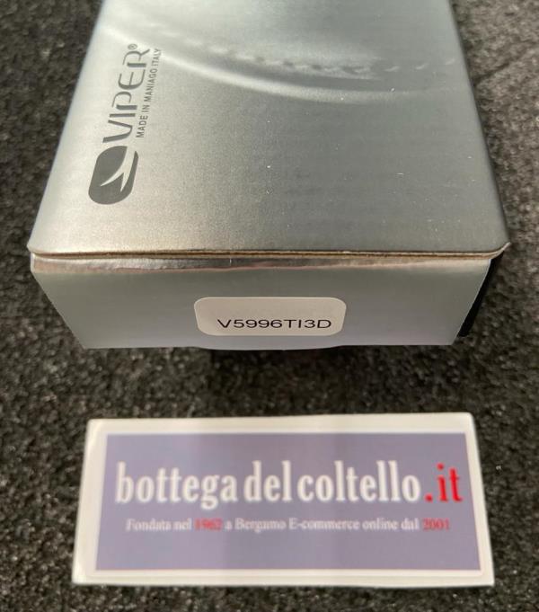 Viper Orso2 V5996TI3D designed by Jens Ansø coltello chiudibile framelock in titanio con lama in acciaio LO-QPM20-4 sinterizzato satinata spessore 4mm. Manico in Titanio stonewashed, lavorazione in 3D disegni geometrici. Clip e Distanziale in titanio monoblocco con finitura anodizzata