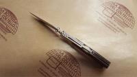 Lama: acciaio sinterizzato Böhler M390 temperato e trattamento criogenico; durezza HRC 59/61, spessore 4 mm; finitura satinata. Meccanismo di blocco: blocco pompa avanzato. Mostrine e Liner: titanio monoblocco. Distanziale: acciaio. Manico: legno di noce. La tonalità e le striature naturali del legno possono essere diverse da quelle riprodotte nell'immagine. Meccanismo di rotazione: cuscinetti reggispinta. Confezione: scatola in cartone. Fodero in cuoio. Dimensioni: lunghezza totale aperto 188 mm, lunghezza lama 82 mm. Peso 125 gr.