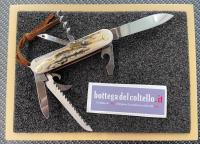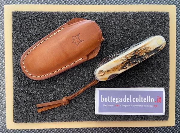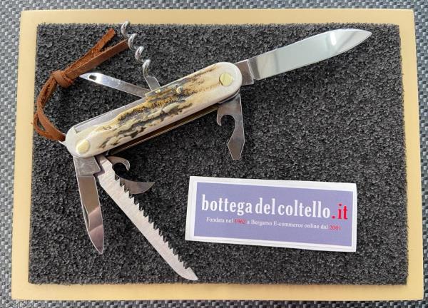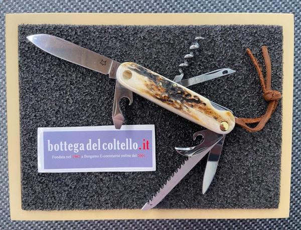 Il multiuso in cervo di Fox, coltello multifuzione con 7 usi tutto made in Maniago Italy, dotato di fodero in cuoio da cintura, non può mancare nel vostro zaino