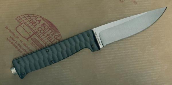 Codice: 976/G10N - Coltello da caccia "Croz" - Design di Ettore Zanon. Si tratta di un lama fissa semplice e leggero di 23 centimetri, di cui 11 di lama (spessa 4 millimetri), in acciaio N690, 60 HRC, uno dei migliori al mondo, con alto contenuto di carbonio e una durezza che consente di operare bene senza perdere il filo. La seghettatura nella parte vicina al manico è voluta per facilitare il lavoro sulle parti ossee. Il manico è in G10 nero. Per l’ergonomia, le guance sono picchiettate in modo da rendere più difficile lo scivolamento nelle fasi di lavoro. Massima sicurezza, garantita anche dalla generosa guardia e dalla zigrinatura nella parte superiore della lama, elementi grazie ai quali risulterà estremamente difficile perdere la presa. Dimensioni: lunghezza totale: 23 cm, 11 cm di lama; peso: 190 gr. Accessori: acciarino. Fodero: nylon di facile lavaggio. Confezione: scatola di cartoncino.