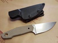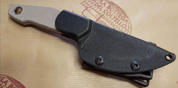 Lama: acciaio Böhler N690Co; durezza HRC HRC 58/60; spessore finito 3,8 mm; finitura stone washed. Manico: canvas micarta verde. Fodero: in Kydex® Lunghezza totale mm 200, lama mm 88, peso gr 110. Confezione: scatola cartone rinforzato con logo.