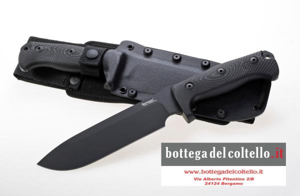 Specifiche tecniche pubblicate dal produttore: Lunghezza totale: 315 mm. - 12.40 in. - Lunghezza lama: 180 mm. - 7.09 in. - Spessore lama: 5.5 mm. - 0.22 in. - Peso totale: 407 gr. - 14.36 oz. - Acciaio lama: Acciaio Sleipner - Finitura lama: Nera ( Mil Spec ) - Materiale manico: Black Canvas - Fodero: Cordura + Kydex - Sistema MOLLE - Imballo: Scatola di cartone.