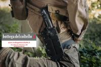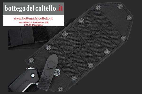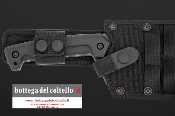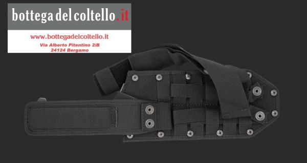 Fatboy è disponibile nelle versioni Satin e Dark Stone, entrambe fornite di un fodero in cordura nero dotato di blocco lama in gomma anti taglio. Il sistema Molle presente su entrambi i lati permette, a seconda del lato dove si posizionano le due strisce verticali che permettono la regolazione in altezza della fascia cosciale, l’utilizzo sia per destrorsi che mancini. Questo sistema consente di agganciare accessori, pouch o un coltello di back up aggiuntivo offrendo la possibilità di spostare facilmente tutti gli accessori da un lato all’altro. Tutti i componenti del fodero possono essere sostituiti separatamente.