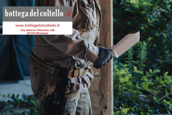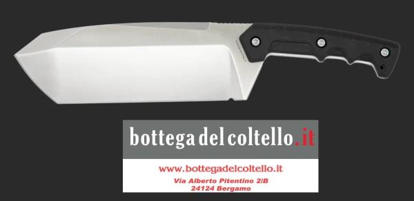 La lama, caratterizzata da un’arrotatura full flat, presenta una particolare struttura della punta che oltre a coniugare alla capacità di penetrazione la possibilità di utilizzo come cuneo, consente al tempo stesso di salvaguardare il tagliente principale. La sua forma e larghezza le consentono anche di scavare piccole buche nel terreno in situazioni di emergenza.