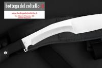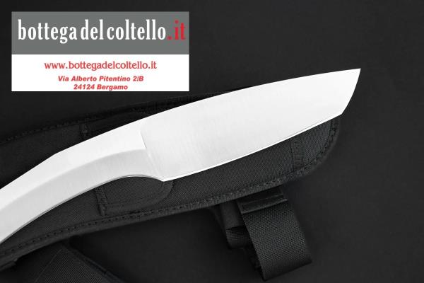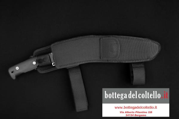Solitamente questo genere di attrezzi sono costruiti con acciaio morbido per essere più elastici e più facilmente riaffilabili. Extrema Ratio è riuscita ad ottenere un attrezzo elastico e dall’affilatura decisamente longeva e resistente utilizzando invece un acciaio duro come il BÖHLER N690. Questo machete è dotato di fodero cosciale con tasca porta oggetti in cordura black e cinghia per il porto di sicurezza.