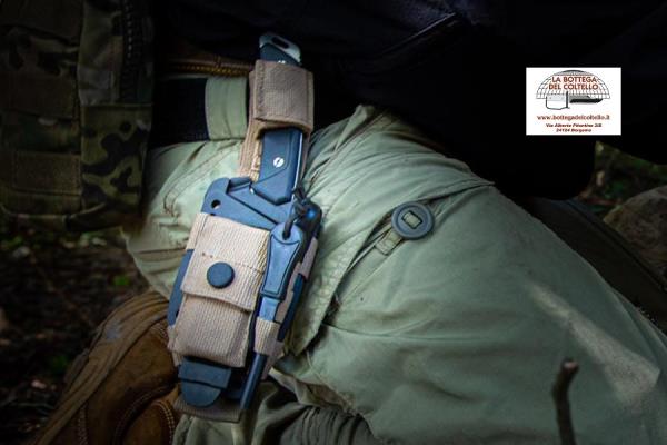 “Extrema Ratio Sethlans” è un coltello da lavoro a lama fissa nato per affrontare una vasta gamma di situazioni, adatto per il survival, bushcraft, prepping, ma anche come lama di backup. Il Sethlans è stato progettato in collaborazione con Daniele Dal Canto, istruttore Master Advanced F.I.S.S.S. (Federazione italiana survival sportivo e sperimentale). Il Sethlans è disponibile in due versioni con due diverse tipologie d’acciaio. Versione Stone Washed che utilizza il böhler N690 trattato termicamente a 58 HRC, scelto per l’affidabilità che ha dimostrato negli ultimi 20 anni dovuta alla sua resistenza all’ossidazione e durata del filo. Versione Black che utilizza acciaio D2, trattato termicamente e criogenicamente a 60 HRC, che presenta una elevata capacità di riaffilatura anche con strumenti di fortuna. Per dare maggiori qualità di durezza e resistenza la lama è rivestita con il nuovo prodotto a base teflon “EXP DARK”, proposto da Extrema Ratio. Il coltello viene fornito con guancette in G10 che presentano il design ergonomico caratteristico delle impugnature Extrema Ratio. Esse possono essere rimosse liberando la struttura scheletrata del coltello, consentendo la massima leggerezza con il minimo spessore. Per gli amanti della personalizzazione estrema, la struttura full-tang permette il rivestimento del manico con cordino paracord. Il fodero è composto da una parte in Kydex leggerissima e minimalista. Si può smontare e può essere adattato sia a mancini che destrorsi. L’aggiunta di una belt clip opzionale permette il posizionamento sia in verticale che in orizzontale del coltello e rende il fodero molto più versatile rispetto alla versione tessile. E’ dotato di un mini pouch con sistema M.O.L.L.E. contenente una pietra bi-facciale per affilatura e una Firesteel per l’accensione di fuochi.