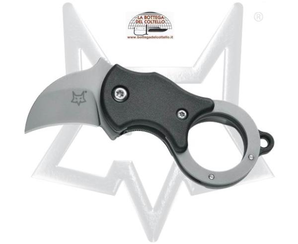 Art. FX-535 Mini-KArambit coltellino chiudibile sandblasted. Caratteristiche pubblicate dal produttore: Lama Acciaio Inox 1.4116 - HRC 55-57 - Manico Nylon Nero - Clip Acciaio Inox 420J2B - Lunghezza lama 2,5 cm 0.98” - Lunghezza totale 8 cm 3.14” - Spessore 2,5 mm 0.09” - Peso 30 gr 1.05 oz.