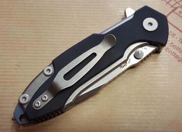 Il modello V 5956 GB qui proposto ha le seguenti caratteristiche: Lama: acciaio inossidabile Böhler M390 MICROCLEAN sinterizzato temperato sottovuoto; doppio rinvenimento e trattamento criogenico; durezza HRC 60/61; spessore 4 mm, versione stone washed - Meccanismo di blocco: liner lock - Cartella Blocco: in titanio GR5 (Ti6Al4V); spessore 2.5 mm; lavorazione CNC; finitura stone washed - Liner: in titanio GR2; spessore 2.5 mm; lavorazione CNC; finitura stone washed. Distanziale: in titanio GR2, lavorazione CNC. Copertura Cartelle: G-10 nero lavorazione CNC. Clip: titanio GR5 spessore 1 mm. Viti: acciaio AISI 303/304. Meccanismo di rotazione: cuscinetti reggispinta. Dimensioni: lunghezza totale 195 mm 7 ¾", lama 78 mm 3 1/16", peso 118-122 gr 4.16-4.30 oz. Confezione: scatola con logo.