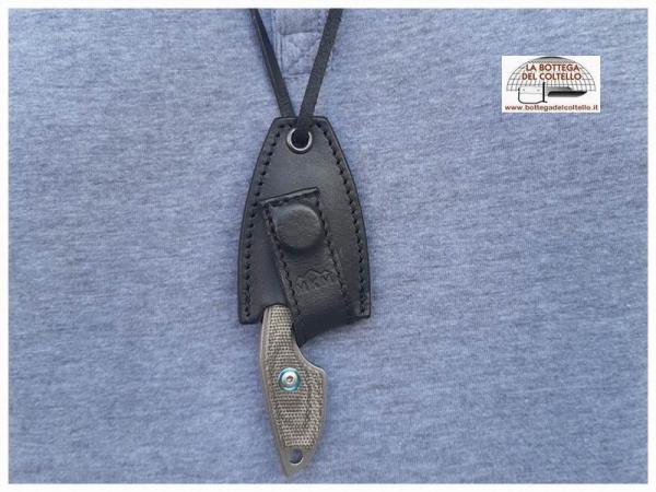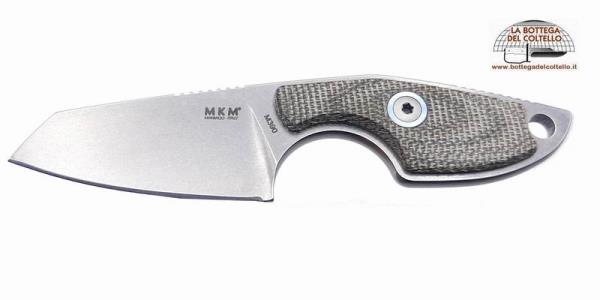 MKM codice MK MR02-GC - Coltello a lama fissa sheepfoot ad un solo lato tagliente. E' dotato di fodero magnetico che permette di fissarlo all'interno della tasca oppure, grazie al cordino in pelle in dotazione, può essere portato anche al collo. La confezione contiene una chiave torks 6/8.