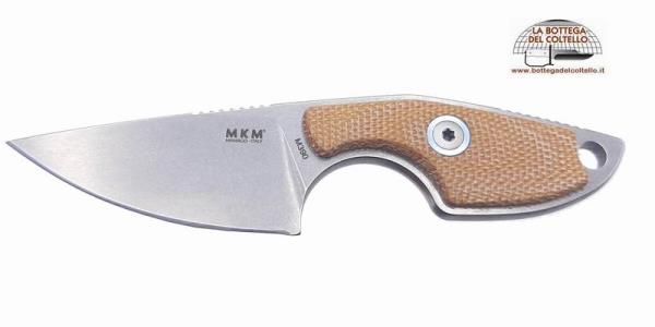 MKM codice MK MR01-NC - Coltello a lama fissa drop point ad un solo lato tagliente. E' dotato di fodero magnetico che permette di fissarlo all'interno della tasca oppure, grazie al cordino in pelle in dotazione, può essere portato anche al collo. La confezione contiene una chiave torks 6/8.