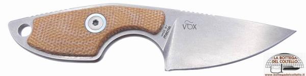 Mikro, coltello a lama fissa drop point con impugnatura in micarta naturale prodotto in Italia da Consorzio Coltellinai di Maniago. Design di Jesper Voxnaes VOX.
