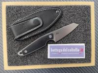 Lama in acciaio inox Bohler M390, finitura stonewashed, lama a punta piede di pecora, spessore 4mm.