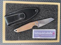 Lama in acciaio inox Bohler M390, finitura stonewashed, lama a punta piede di pecora, spessore 4mm.