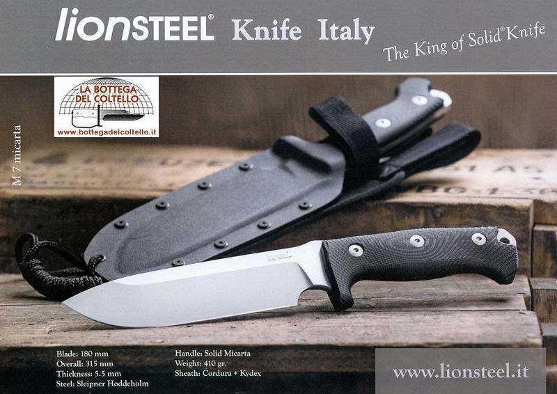 M7 MS è un coltello a lama fissa targato LionSteel. Si tratta di un coltello di grandi dimensioni se comparato con gli altri modelli Lion Steel, il cui obiettivo era quello di costruire un buon coltello multiruolo da campo.