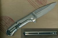 Dall'esperienza come militare in teatri di guerra Nicolai Lilin, noto scrittore, ha disegnato questo coltello dotato di robustezza e affidabilità grazie allo spessore della lama e al materiale del manico in titanio e G10 color coyote. Per il sistema di apertura "Flipper" sono stati utilizzati dei cuscinetti reggispinta totalmente inossidabili. Questo coltello 680/G10CY POLICE ha: lama in acciaio inox N690 finitura stonewashed; lunghezza totale 230 mm, lunghezza lama 110 mm; manico in titanio, guancette G10 coyote; clip in acciaio. Fodero nero. Confezione: scatola di cartoncino nero.