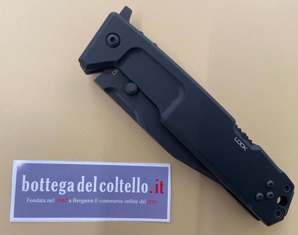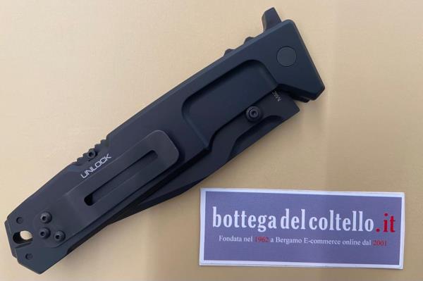 Tutte le parti del coltello sono ricavate dal pieno da macchine a controllo numerico ad alta precisione mentre l'assemblaggio, l'aggiustaggio e l'affilatura sono condotte artigianalmente. Tutta la viteria, i perni e la clip sono in acciaio inossidabile brunito. La lama, la leva ed il codolo sono ricoperte con il trattamento Testudo. Le guancette sono anodizzate nere. Lunghezza totale mm 260, lama mm 115, peso gr 245.