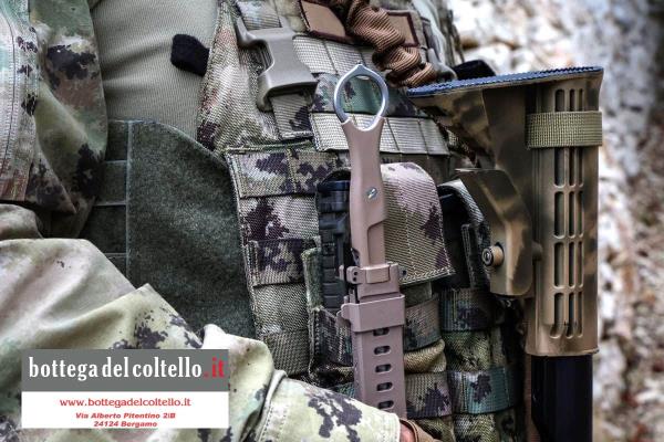 È un coltello a lama fissa di tipo tattico pensato per quei casi in cui il coltello deve essere estremamente leggero e compatto. La nuova colorazione desert rende disponibile anche per questo modello una tonalità in linea con le esigenze più comuni dei moderni reparti operativi.