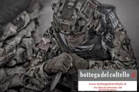 Trattandosi di un coltello progettato per uso professionale, molta attenzione è stata dedicata alla facilità di porto, accessibilità ed estrazione in caso di bisogno. Il coltello è assicurato al fodero da una sicura a sgancio rapido che può essere facilmente invertita per l’uso da parte di mancini. Anche il fodero è nella colorazione Desert, realizzato in Nylon ad alta resistenza, molto versatile e dotato di 2 passanti regolabili che ne consentono il fissaggio sui sistemi M.O.L.L.E, favorendo una rapida estrazione in diversi scenari tattici.