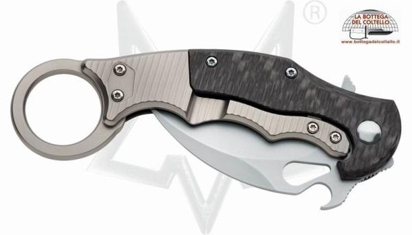 Fox Karambit, chiudibile frame lock con impugnatura in fibra di carbonio e lama bead blasted (sabbiata).