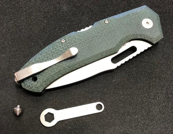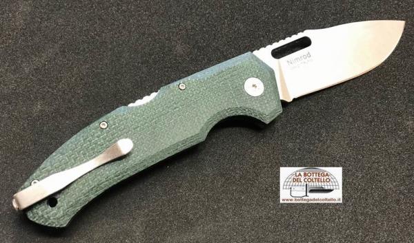 Nimrod, Coltello chiudibile prodotto da Maserin, coltellerie in Maniago dal 1960. Versione con guancette in micarta verde.