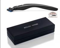 Rasoio rifinito con neri pianoforte e satinato, tinte usate anche da alcuni dei marchi automobilistici più prestigiosi del Regno Unito, dove è stato prodotto. E' compatibile con la lama Fusion di Gillette ed è presentato in una confezione regalo Bolin Webb con una testina Fusion ProGlide. Disponibile anche in set regalo con fodero e stand.