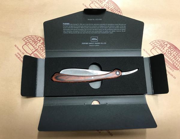 Rasoio da barba shavette Feather Artist Club DX Modello ACD-RW è chiudibile, a lametta intercambiabile, con impugnatura in legno stratificato e resinato. Fornito senza lamette, acquistabili separatamente tutte le versioni di lamette Feather per shavette Feather.