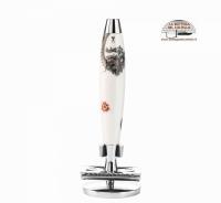 Rasoio uomo RED MEISSEN SR prodotto da Muhle è un rasoio di sicurezza a pettine chiuso con manico in porcellana Meissen sul quale è decorato a mano il drago cinese Ming, con dettagli e supporto in metallo cromato.