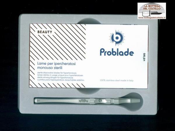 Ipercheratosi, lame monouso sterili 0/0,5/1. Kit composto da lame di tre diverse misure abbinate al relativo portalama. Convenienza e praticità. E' un prodotto Problade, Italy.