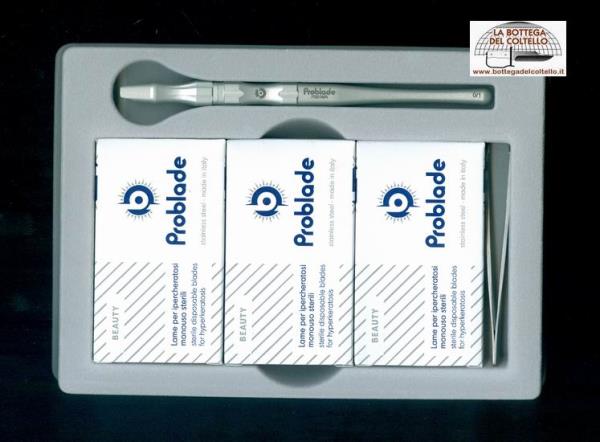 Ipercheratosi plantare, Kit PB01KTS Problade con porta lama, lame sterili e una pinzetta. Indicato per le scuole.