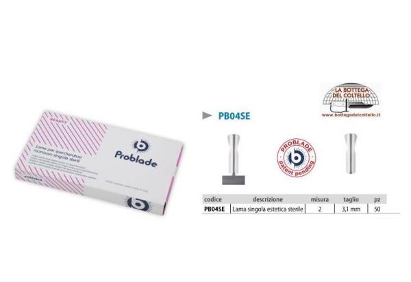 Art. PB04SE - Una scatola con 50 lame per uso estetico professionale misura 2, taglio mm 3,1. Utilizzare solo se la confezione è integra e con porta lama Problade da acquistare separatamente.