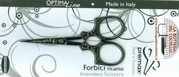 Premax consorzio 10598 Forbice per ricamo mm 92 Acciaio non inossidabile. Finitura canna di fucile. Piccola decorazione su una lama. Lunghezza totale mm 92.