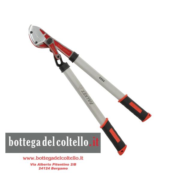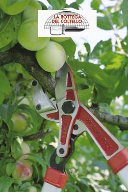 Tagliarami a cuneo con lama curva in acciaio, battente in lega di alluminio temprato, sistema di leva che diminuisce lo sforzo del taglio. Dimensioni: lunghezza cm 60, peso gr 920, diametro max dei rami mm 45.