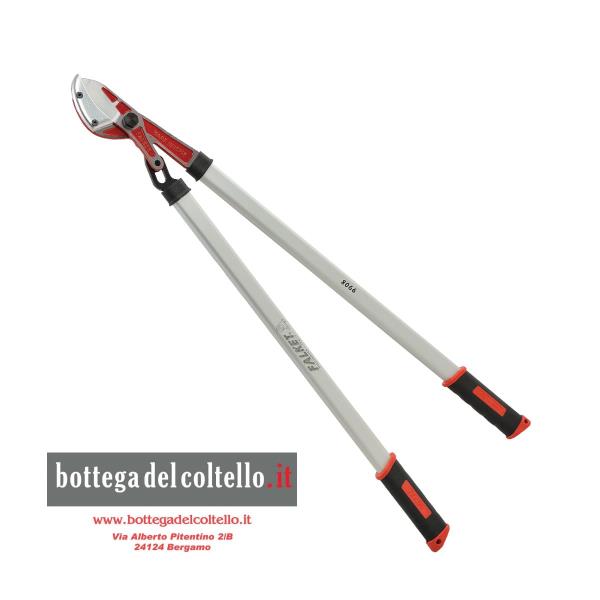 Tagliarami a cuneo con lama curva in acciaio, battente in lega di alluminio temprato, sistema di leva che diminuisce lo sforzo del taglio. Dimensioni: lunghezza cm 80, peso gr 1000, diametro max dei rami mm 50.