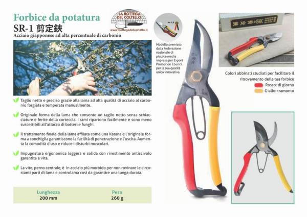 Giardinaggio, Forbice da potatura SR-1 di Tobisho, modello premiato dalla Federazione nazionale di piccola-media impresa per Export Promotion Council per la sua qualità unica innovativa.