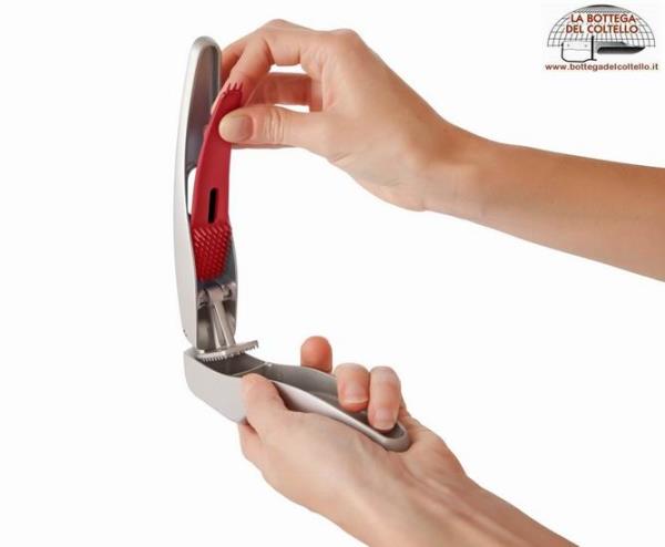 Aglio crudo, pressa Susi 3 di Zyliss con strumento di pulizia integrato rimuovibile dal manico.