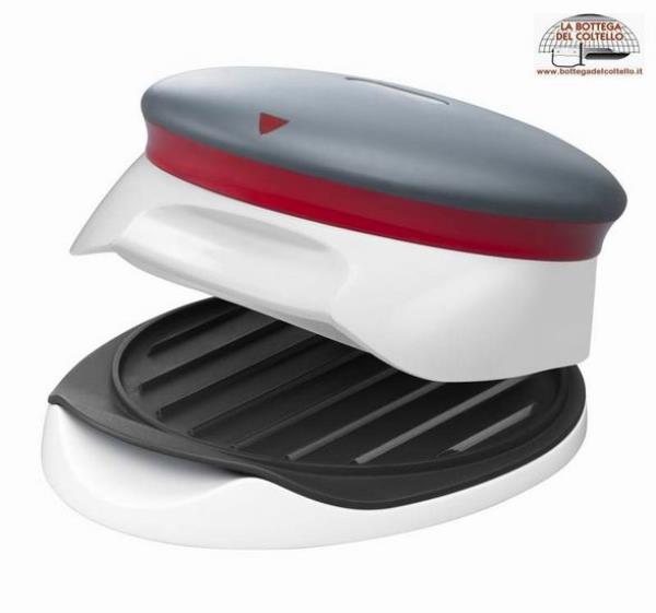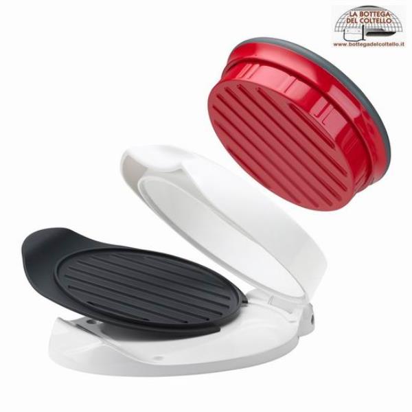 Risultati rapidi, facili e appaganti. Comprime uniformemente gli ingredienti per creare hamburger perfettamente modellati che non si sbriciolano. Vassoio per rimuovere gli hamburgers facilmente e senza danni. La rotazione del coperchio consente di ottenere hamburgers di diverso spessore. Adatto a qualsiasi tipo di carne macinata con condimento. Piedini antiscivolo. Confezione: scatola di cartoncino.