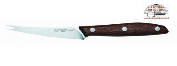 Art. 2C 1017 NO Cheese spreader knife. Design by Oreste Frati. Lama in acciaio inossidabile German steel 4116 X50CrMOV HRC 55/57. Manico in legno di noce. Lunghezza totale cm 21. Non lavabile in lavastoviglie. Confezione: scatola nera. L'impugnatura può avere striature naturali diverse da quelle riprodotte nell'immagine.