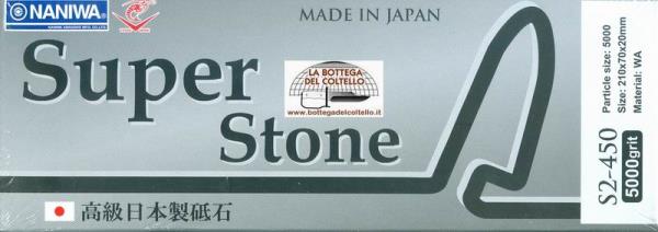 Naniwa Art. S2-450 Super stone 5000grit Made in Japan. Dimensioni: mm 210x70x20. Confezione: scatola di cartoncino.