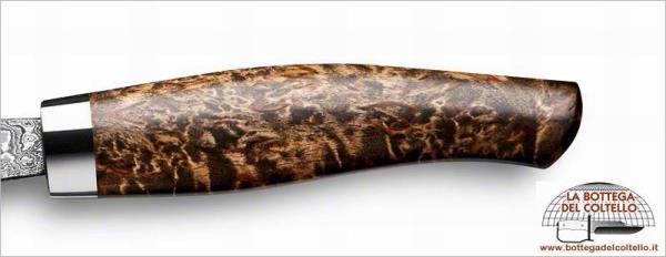 Karelian radica di betulla: • Paese di origine: terra di confine tra Russia e Est-Finlandia - • Legno non molto duro ma duraturo, con una densità di 600-700 kg / mc - • Legno di colorazione da quasi bianco a bruno-rossastro - • Il legno classico dei manici di coltello scandinavi - • La bella trama diventa visibile solo dopo elaborata incisione e trattamenti di oliatura. - I manici prodotti da legno di radica possono avere inclusioni. Questa è una condizione naturale che non è un motivo per il rimborso.